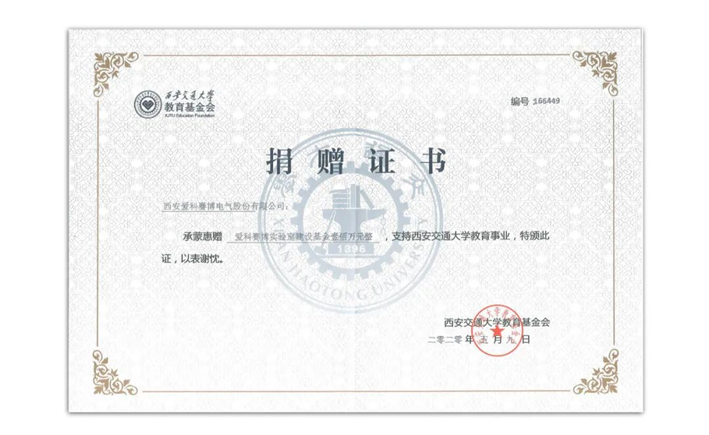 2020年5月,西安愛科賽博電氣股份有限公司向西安交通大學(xué)教育基金會捐贈人民幣100萬元整,助力電氣學(xué)院工業(yè)自動化系在中國西部科技創(chuàng)新港的實(shí)驗(yàn)室建設(shè)。2019年11月,西安愛科賽博電氣股份有限公司與西安交通大學(xué)簽訂戰(zhàn)略合作協(xié)議,建設(shè)“西安交大—愛科賽博”先進(jìn)電力電子裝備研究中心。該研究中心依托西安交大西部科技創(chuàng)新港的研究平臺和西安愛科賽博公司的產(chǎn)業(yè)化平臺,致力于電力電子裝備領(lǐng)域關(guān)鍵核心技術(shù)和基礎(chǔ)共性技術(shù)研究,打造集研究開發(fā)、成果轉(zhuǎn)化和社會服務(wù)等多功能于一體的研究中心。本次捐贈,是落實(shí)校企雙方合作的具體舉措,旨在加強(qiáng)公司與學(xué)校科研合作的深度,助力校企產(chǎn)學(xué)研合作再上新臺階。
