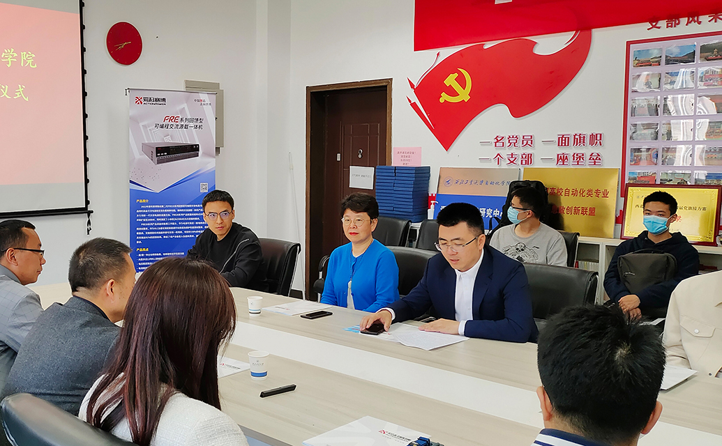 李虹書記首先歡迎并感謝愛科賽博一行的蒞臨,她在致辭中介紹了學院的發展歷史、優秀教學成果,以及“擎電杯”科技節愛科賽博專項賽、“愛科賽博獎學金”獲獎情況。愛科賽博董事長白小青表示,愛科賽博與理工大淵源深厚,將盡力為學院人才培養、科研成果轉化助力,將深化與理工大的合作,共同促進電力電子行業可持續發展。