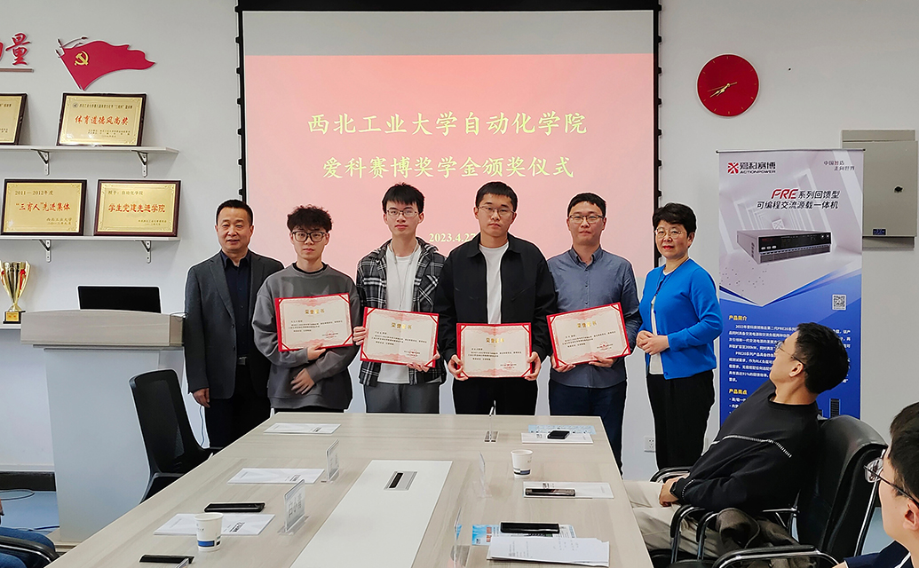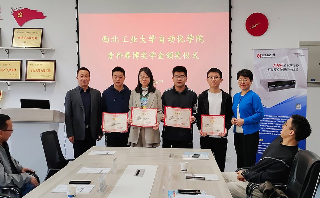 4月27日上午,愛科賽博與西北工業大學自動化學院共同舉行“愛科賽博獎學金”頒獎儀式暨座談會,西工大自動化學院黨委副書記管峻、西工大自動化學院黨委委員電氣系教授吳小華、愛科賽博董事長白小青出席活動并致辭,愛科賽博智能電網研發總監、人力資源總監,西工大自動化學院教授、獲獎學生及師生代表參加了本次活動。