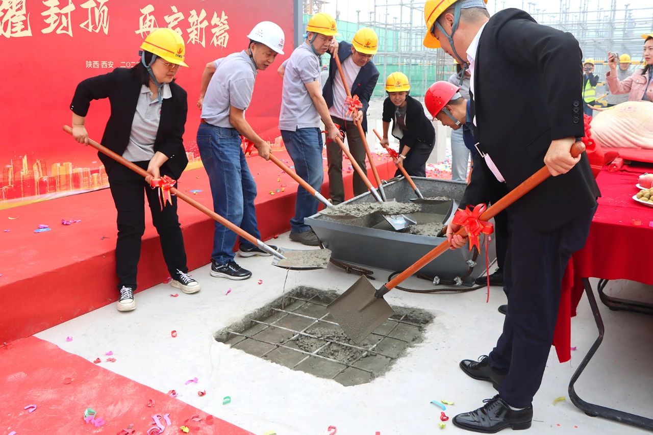 在全場(chǎng)矚目下,封頂儀式正式開啟,繽紛的禮花、彩煙在晴空中綻放,響徹云霄的禮炮和鞭炮聲交織成鏗鏘有力的樂章。到場(chǎng)嘉賓們手持鐵鍬,合力完成了最后一方混凝土的澆筑,這一刻既是愛科賽博新總部建筑的封頂,也是企業(yè)發(fā)展道路上的一個(gè)嶄新起點(diǎn)。集體合影定格下了愛科人對(duì)公司未來美好憧憬的笑顏,也記錄下了新起點(diǎn)、再起航,為實(shí)現(xiàn)愛科賽博新目標(biāo)的一個(gè)個(gè)堅(jiān)定身影。