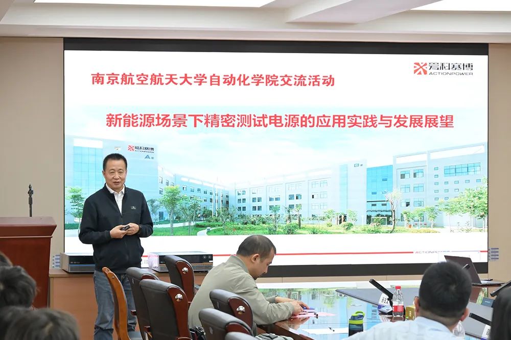 捐贈儀式結束后,白小青董事長做了“新能源場景下精密測試電源的應用實踐與發展展望”的專題報告,與南航師生進行了分享交流。隨后,公司一行參觀了南航電氣工程系實驗室,雙方對后續產學研合作相關問題進行了交流探討。